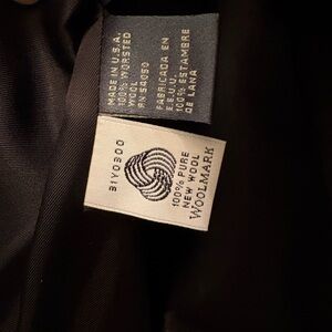 Double-breasted blazer with crest. Expertly crafted from Italian stretch wool, this double-breasted wool blazer is adorned with helmet-engraved gold-tone metal buttons that complement its signature bullion-embroidered crest. Original price $698. Size 16. Straight cut. Designed to hit from the hip.