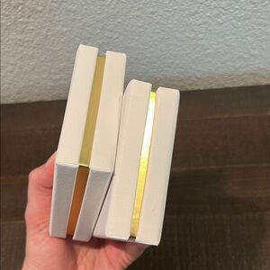 Elegant Creed fragrance set. Includes clear and orange bottles. Stylish gold and white packaging.