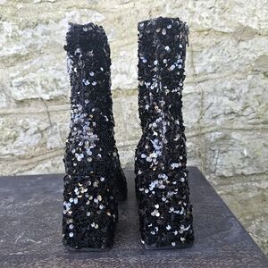Womens Size 8 Black Platform Sequin Shoes High Heel Bootie Boots