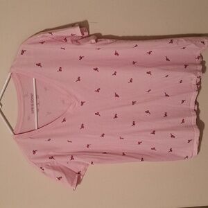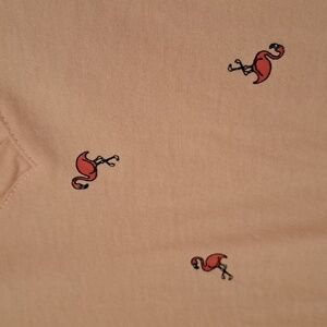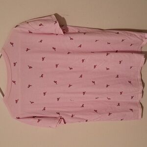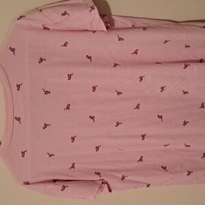 Light pink V-neck tee featuring pink flamingo pattern. Soft and casual. Like New. V neckline.