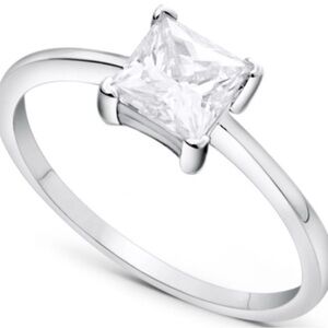 A dazzling piece of fine jewelry, the Bellamy ring showcases a princess-cut moissanite stone. Bringing additional allure as it catches the light, the gemstone sends light sparkling across the room, catching everybody’s attention. Elegantly accentuated by the silver band, this 0.85 carat princess-cut moissanite gemstone is an instant heirloom.A rare and naturally-originating gemstone, every moissanite gem is unique and to the naked eye, is brighter and more lustrous than a diamond.As such, more and more expert gem cutters, jewelers and gemologists have begun turning to moissanite as the perfect diamond alternative.Made in cutting-edge laboratories using the most advanced processes, moissanite is a sustainable, conflict-free gemstone, whose colorless quality offers an even higher level of brilliance and fire than that of a diamond, without the substantial price tag.Gemstone: Moissanite, 0.85 CT, DEF-color, princess cutSize:6 Material: Sterling silverPlating: Rhodium* Please note: Crafted from high-quality sterling silver (92.5% pure silver) and enhanced with a rhodium plating, this piece may naturally tarnish over time—a normal characteristic of sterling silver. To maintain its shine and beauty, we recommend regular gentle cleaning and avoiding exposure to harsh chemicals like perfumes, lotions, and household cleaning agents. When not wearing your jewelry, store it in an airtight container or a tarnish-resistant pouch to minimize exposure to air and moisture.