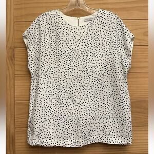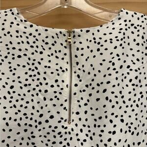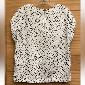 Swedish clothing brand & Other Stories viscose top, women's US size 10 (Eur 40). White with black speckled print. Cap sleeves. Backside zipper closure. Ultra lightweight. Retail $99.