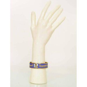 Hermes Tiger Bangle Bracelet Cloisonne Enamel Blue Gold Vintage Size 65 RARE!