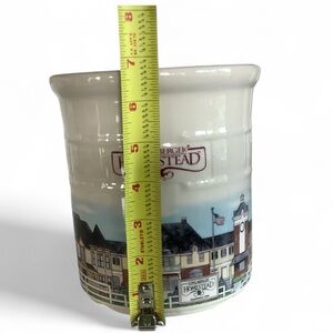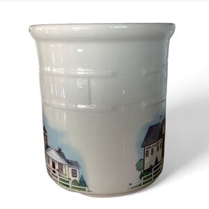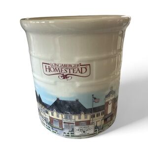 Retired longaberger 2 quart crock homestead. To commemorate the opening of the longaberger homestead in Ohio. Only sold June of 1999. Cream color with actual rendition of the homestead. On bottom, Made in USA