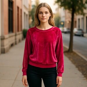 Elegant pink velvet top with long sleeves. Perfect for a chic look.