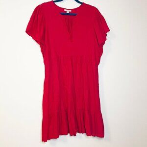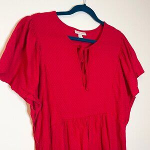 Knox Rose Red Textured Tie Neck Boho Babydoll A-Line Dress Size XL