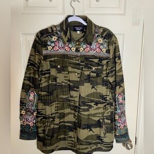 Johnny Was Raquel Military Camo Green Embroidered Corduroy Jacket M