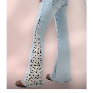 True Religion Light Wash , Low Rise, Crochet ,Joey Flare Jeans