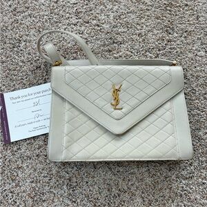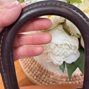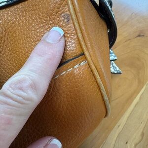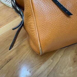 Please review all pictures carefully. This bag has been well loved. Still has life left, but want to be transparent. Needs a leather cleaning and there are two corners that have exposed piping. It’s in incredibly beautiful with this rare butterscotch color and exotic trim. Interior is a black color that is overall pretty clean. Plenty of room for all your supplies. Does not come with a shoulder strap.