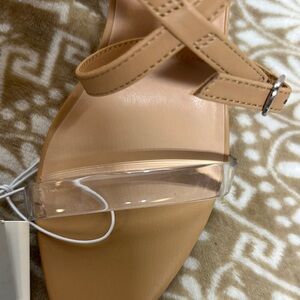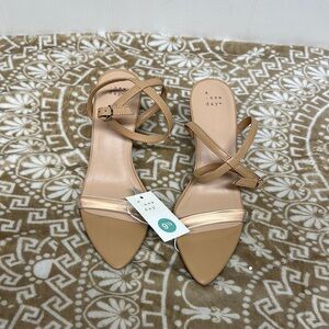 Step up your style with these elegant tan heels from a new day, featuring a minimalist design with thin straps and a comfortable heel. Perfect for any occasion, these versatile shoes effortlessly complement a variety of outfits. Crafted with a smooth, matte finish, they offer both elegance and comfort.