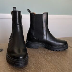 Hard to find! Sezane Lena Lugsole Chelsea leather boots black US 7 runs large