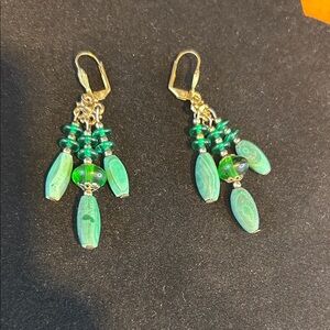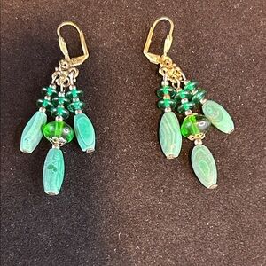 Beads: They use a combination of translucent emerald-green glass beads and matte, opaque green stones (which look like malachite or dyed turquoise).