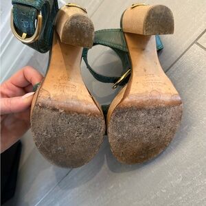 Chloe Dark Green leather wooden Heel size 35 1/2