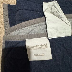 Restoration Hardware baby and child reversible quilted blanket; blue and gray. Perfect for adding a touch of style to your bedroom decor.