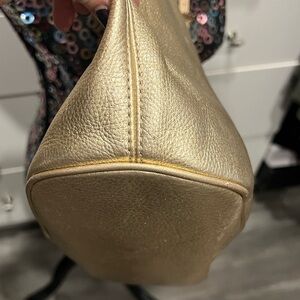 Michael Kors Gold Pebbled Leather Tote with Adjustable Cream Straps