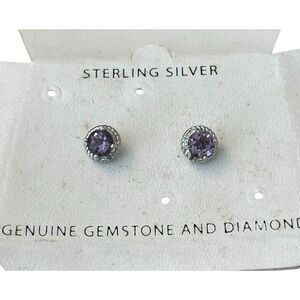 Sterling Silver Amethyst Diamond Round Stud Earrings 925 Genuine Gemstone DBJ
