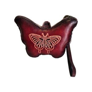 This product is a new yellow genuine leather handmade butterfly coin purse wristlet key case. The coin wallet is designed with a butterfly character and a nature theme, making it a stylish accessory for both men and women. Its small size and wristlet style make it convenient for carrying coins, keys, or small items. The vibrant yellow color and high-quality leather material add a touch of elegance to the piece, making it a unique and eye-catching addition to any accessory collection.