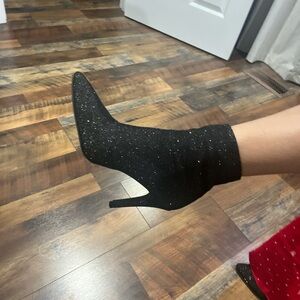 Elevate your look with these chic black sparkle heeled boots. Perfect for adding a touch of glamour to any outfit.