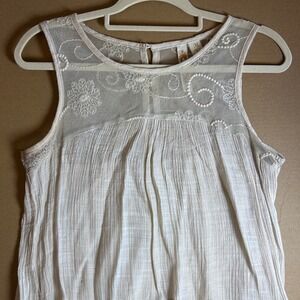 Adiva USA White Embroidered Lace Sheer Mesh Tank Top Women's Medium Whimsical
