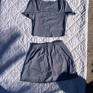 Elevate your wardrobe with this chic gray skirt set. Perfect for any occasion, this set offers both comfort and style.