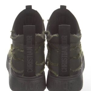 Chic Dior combat nylon raw edge boots in black and olive. Rugged design with a modern twist. Ideal for stylish street style outings.