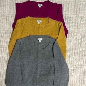 Chic and cozy J. Crew Teddy sweaters . Includes magenta, mustard, and gray. Very little piling, in great used condition.