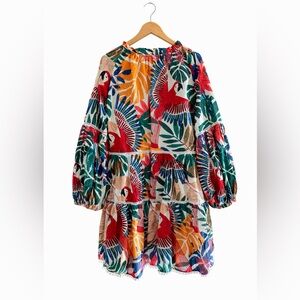 Farm Rio Off-White Macaw Bloom Mini Dress Size Medium