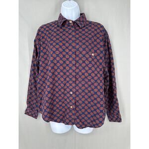 70s Vintage Top Womens Medium Navy Blue Paisley Red Button Boho Cotton