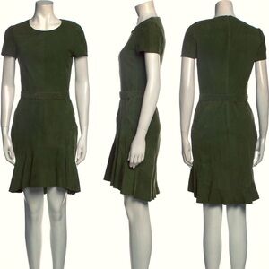 Rachel Zoe Olive Green Goat Suede ‘Seine’ Belted Dress ASO Meghan Markle Size 2