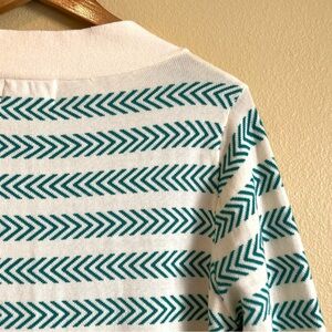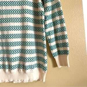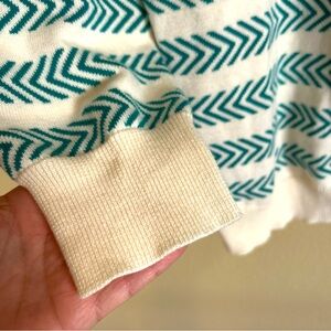 Oxknit Sweater Women’s XL 60s Retro Geo Mod Style Cotton Long Sleeve Teal Cream