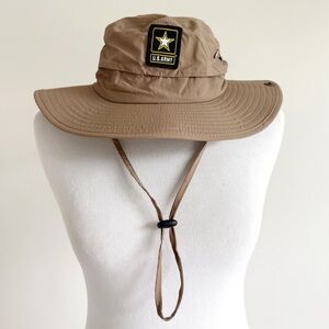 US Army Boonie Bucket Hat Mens Womens Brown Khaki Adjustable Removable Chin Cord