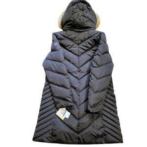 NWT Michael Kors Coat Women's XL Black Chevron Puffer Faux Fur Hooded