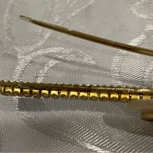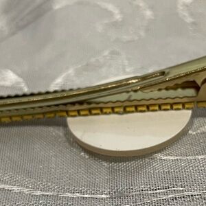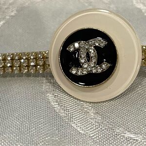 Chic CHANEL hair accessory. Features black and gold design with sparkling details.
