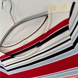 Chic Talbots Petites long sleeve dress with bold horizontal stripes. Perfect for versatile styling. Size Medium
