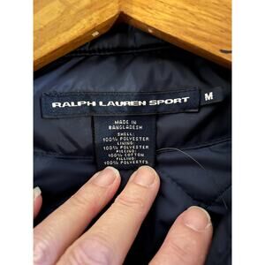 Ralph Lauren Sport Quilted Jacket Women’s M Navy Crest Patch Snap Corduroy Cuffs