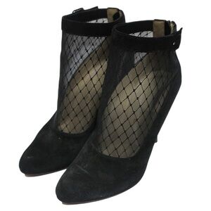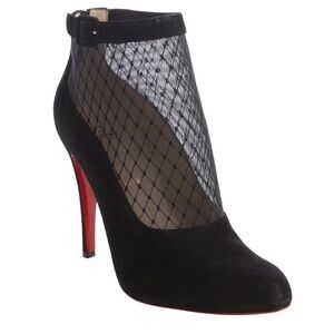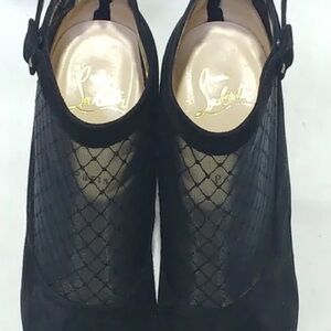 Christian Louboutin "Resillissima 100" Lace Net Stiletto Buckle Suede Heels