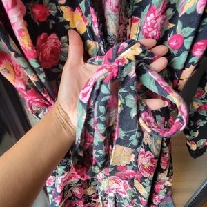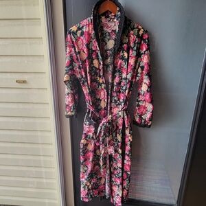 Vintage Robe Floral Print Victoria's Secret Cotton Belt P/S Long Wrap Pockets