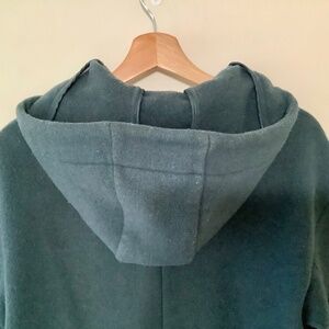Uniqlo Wool Blend Hooded Long Winter Coat Teal Green Oversized Minimalist