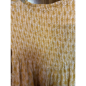 FREE PEOPLE Sweet Annie Smocked Mini Dress Mustard Block Print Floral Sz small