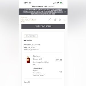 @skolksx3 All of my fragrances are authentic. I have receipts, I purchased directly from MFK and get all my bottles engraved. You do realize that it is for a 8 ml sample of my baccarat rouge correct?