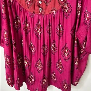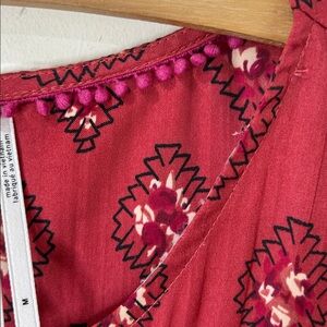 BY ANTHROPOLOGIE Pink Red Puff Sleeve Ikat Print Blouse Size Medium