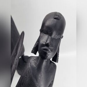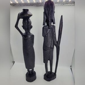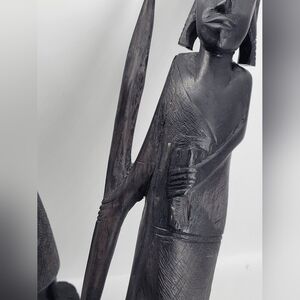 ● Vintage set of 2 Made in Africa from Kenya Woman Carrying bowl on her head She looks pregnant, and the man warrior with Spear