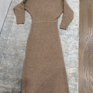 NWOT Blueivy sweater maxi dress w/front slit. Size S. This dress has a small elastic waist and the sweater material is very comfortable - not abrasive. No snags or signs of wear. Can be worn off one shoulder.