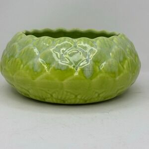 Moreno Ceramics Vintage Green Cracked Glaze Low Bowl Planter Dish USA MCM Retro