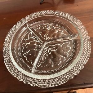 Vintage Pressed Glass Fruit/Bubble Pattern Divided Round Relish Dish 8 1/2".