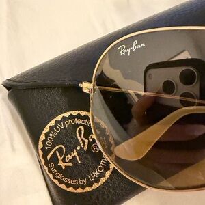 Classic Ray-Ban aviators with gold frames. Comes with a black leather case.