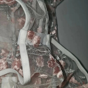 Lace Mesh Floral Puff Sleeve Corset Bodysuit try on only excellent condition size small