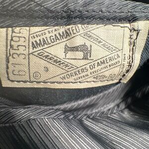 The jacket is a 42R with a sharp two-button closure, notched lapels, and dual rear vents. The matching trousers are flat-front and tailored for a clean, professional silhouette. This piece blends old-school quality with modern versatility — a must-have for collectors or anyone seeking upscale vintage menswear.