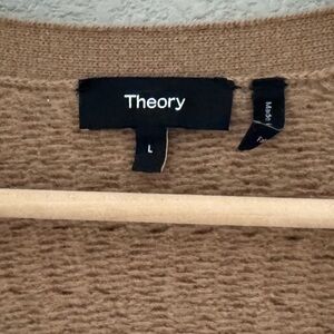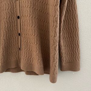 Theory Long Cable Knit Cardigan Sweater Large Camel Brown Wool Cashmere Minimal