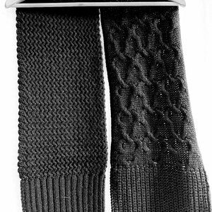 Men's wool blend black knit scarf in duel knit pattern. Warm and comfortable scarf with a sophisticated style.